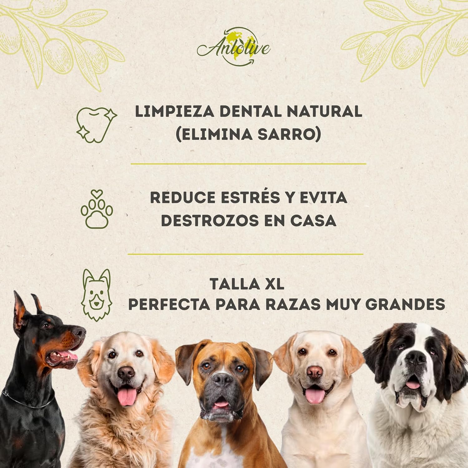 Ofrece una masticación segura y duradera, sin riesgo de astillas ni productos químicos. Su textura y dureza natural entretienen durante horas, al mismo tiempo que fortalece la mandíbula y limpia los dientes de tu peludo.